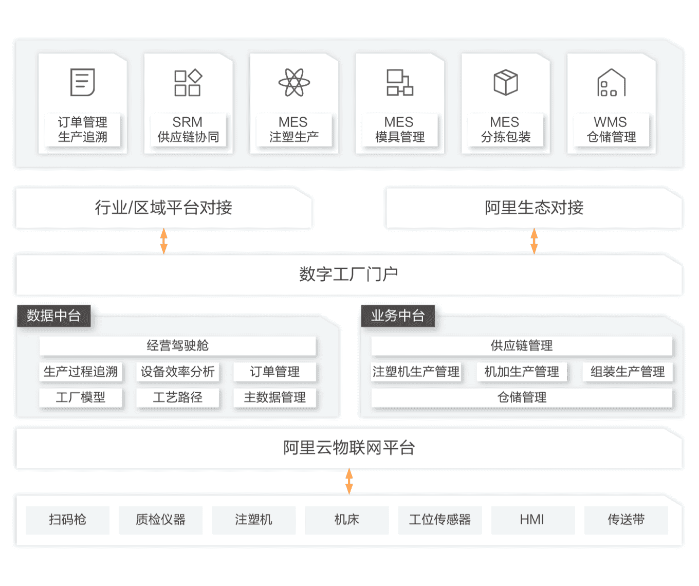 【易商飼料ERP】數字工廠解決方案方案架構 ![]() 數字工廠方案架構 阿里產業生態 全面整合阿里生態能力,幫助企業實現新制造轉型升級 行業 & 區域平臺 平臺化運營,促進產業數字化及工業互聯網產業的發展 企業級平臺-數字工廠 助力企業實現全面的數字化升級, 提升生產經營能力 工業物聯網平臺 專業化的設備、應用數據上云服務, 提供安全、可靠, 高效的物聯網服務 方案優勢 ![]() 云釘一體, 三個在線 依托釘釘和阿里云工業互聯網平臺的能力,實現了制造企業的“三個在線”:組織在線、生產在線、設備在線;通過對工廠的人員、設備、生產的可視化管理,可以從數據維度全面評估企業的生產健康度。 ![]() 開箱即用,靈活調整 基于物聯網平臺的基礎能力,面向制造企業打造了標準化的數字工廠平臺,可以基于公有云、VPC、專有云進行部署,開箱即用,所有基于平臺的業務模塊可以按需選擇和調整。 ![]() 數據打通,業務串聯 基于標準的ISA95模型,通過工廠、工業建模,配合主數據管理,以生產追溯為核心,可以實現工廠縱向和橫向數據的打通和治理,以產品管理及訂單管理為維度,實現端到端的打通,串聯各項企業業務。 ![]() 快速交付,業務提煉 通過多個標桿項目的打造,積累了企業生產管理各方面的標準化的業務應用,可以幫助工廠企業快速實現項目交付和應用,同時也可以結合企業的情況,進行業務提煉。 客戶案例 合作伙伴 |